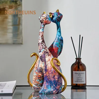Cat Lovers Resin Figurines | Graffiti Couple Ornaments for Home Decor