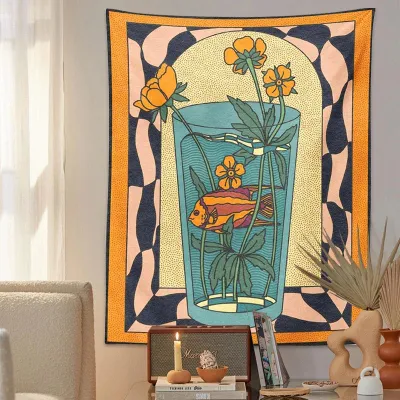 Psychedelic Vase Goldfish Tapestry Wall Hanging Boujee Chic Boho Art Decor