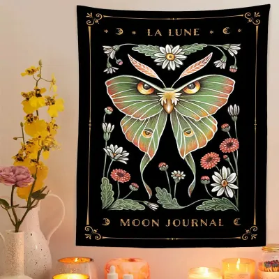 Moon Moth Tapestry Wall Hanging - Mystical Moon Phase & Cottagecore Wall Art