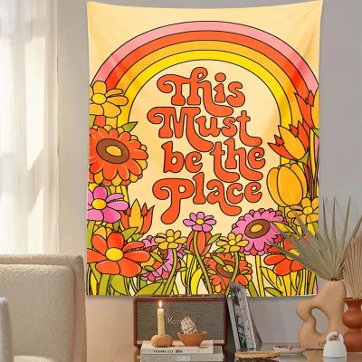 Retro Rainbow Sun Tapestry: Boho Aesthetic Wall Art for Home Decor