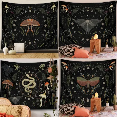 Witch Garden Tapestry Wall Hanging Moon Moth Tarot Psychedelic Decor