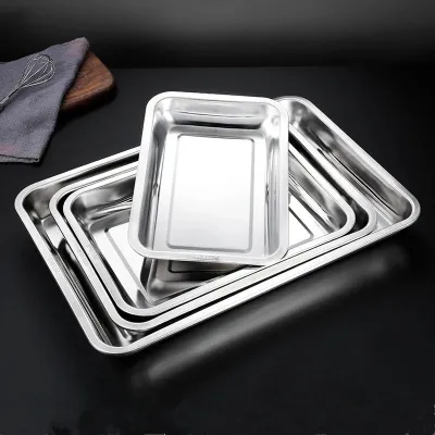 Stainless Steel BBQ Trays Dessert Baking Pan Kitchen Organizer Dish